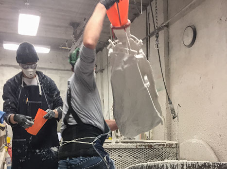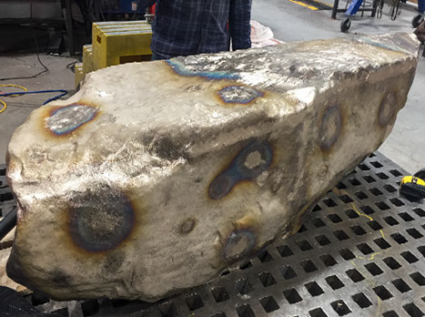 For the bronze boulders, Anthony engaged Workshop Art Fabrication, in Kingston, NY. From shortly after his design was chosen at the beginning of the summer, 2017, the artist, the glass studio, and the metal shop worked together to optimize the design and fabrication approaches of the work. As the metal workers in the Hudson Valley were figuring out the best way to mount the boulders on frames that could be permanently installed in the park, the crew at RAS cast nearly 100 clear glass blocks, to be highly polished by hand and assembled and fastened into the channels in the boulders.