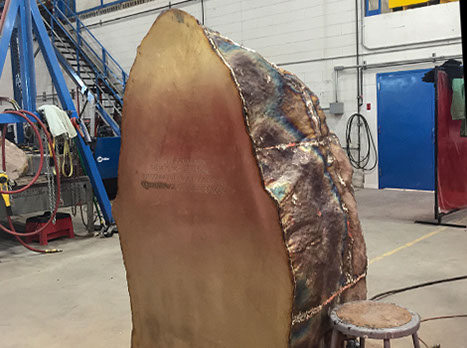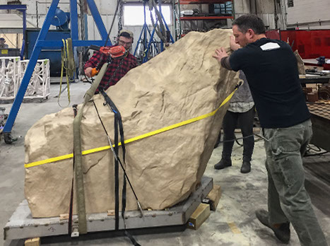 Starting in the spring of 2018 the boulders, which weighed between 600–1200 lbs, were transported to Boston, where the glass was installed and weatherproofed. Anthony traveled between the two studios and the installation site, overseeing the work, installing LED components, and fine-tuning the patinas.